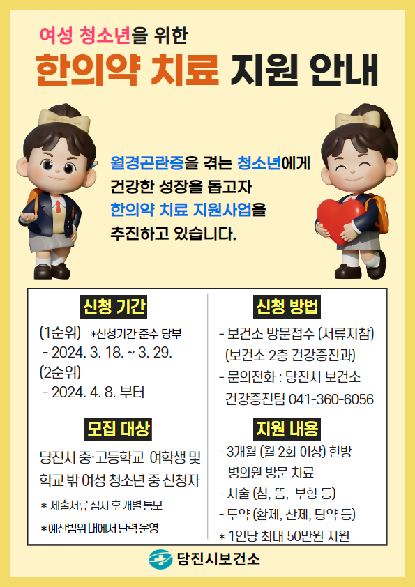 당진시, 월경곤란증 여성 청소년 한의약 치료 대상자 모집