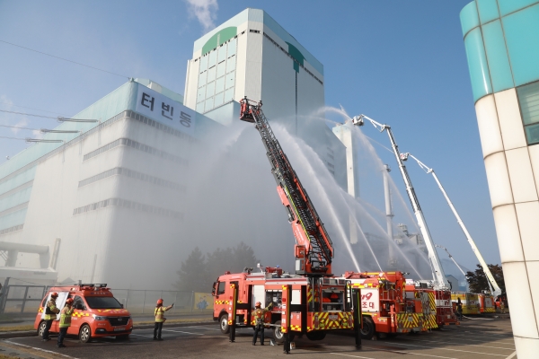 당진시는 지난해 10월 당진 발전본부에서 당진시, 충남도청, 당진소방서 한국동서발전 등 18개 기관과 합동으로 훈련했으며 당진발전본부 화재에 따른 유해 물질 유출을 상황을 가정해 실전처럼 진행했다.