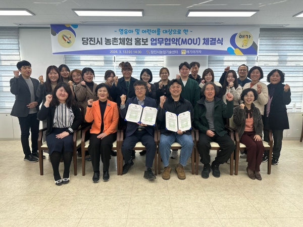 [Ytv영상스토리] 당진시농업기술센터는 13일 키즈액티비티 플랫폼 부문 1위 ‘애기야 가자’와 관내 농촌체험 홍보 업무협약을 체결했다고 밝혔다.