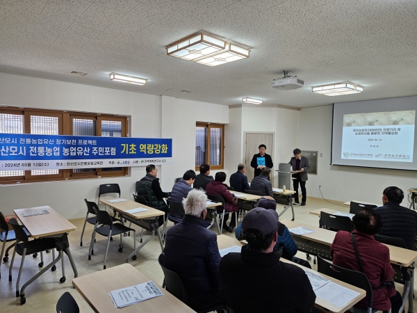 강의를 맡은 한국농어촌유산학회 박윤호 박사가 농업유산 제도에 대한 기본적인 이해부터 농업유산 지정 현황 및 각종 보전 사례들을 주민들의 눈높이에 맞게 설명했으며 이후 향후 추진될 한산모시 전통농업 주민참여프로그램에 대한 계획을 소개하고 의견을 나눴다.