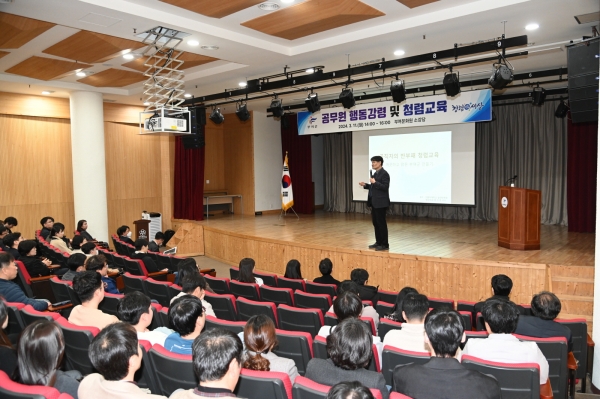 교육은 직무수행 과정 중에 반드시 지켜야 하는 공직자 행동강령과 청탁금지법 공직문화 개선을 위한 갑질 근절 등에 대한 이해도를 높여 청렴 감수성 함양과 부패행위를 예방하고자 마련됐다.