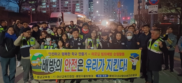 [Ytv영상스토리] 아산교육지원청이 3월 14일 저녁 배방중학교에서 지역 유관기관과 함께 청소년 선도 보호를 위해 민경 야간 합동 순찰을 실시했다.