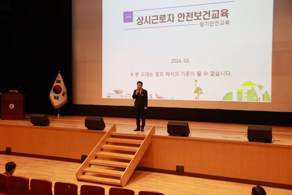 교육은 지난 14일과 15일은 시청 내 팀장급 직원 관리감독자 35명을 대상으로 교육을 실시했으며 18일과 19일에는 시청 상시근로자와 재정일자리 근로자를 대상으로 교육을 개최하는 등 교육 대상별 맞춤별 교육을 통해 교육 효과를 극대화 하고자 했다.