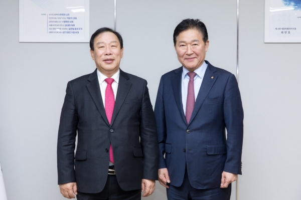 [Ytv영상스토리] 최민호 세종시장이 19일 세종시청에서 박종범 세계한인무역협회 회장을 만나 관내 수출기업의 해외진출 협력 방안을 논의했다.