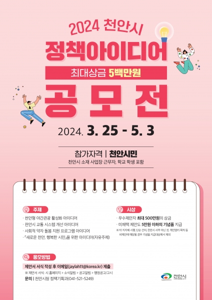 천안시, ‘2024 상반기 정책 아이디어 공모전’ 시행
