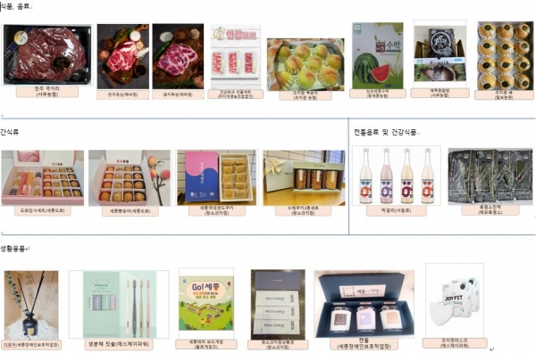 또 쌀막걸리, 세종빵숭아, 세종국대샌드쿠키, 흑염소진액, 방향기, 세종을 테마로 한 보드게임 체험 등 답례품도 추가로 선정됐다.