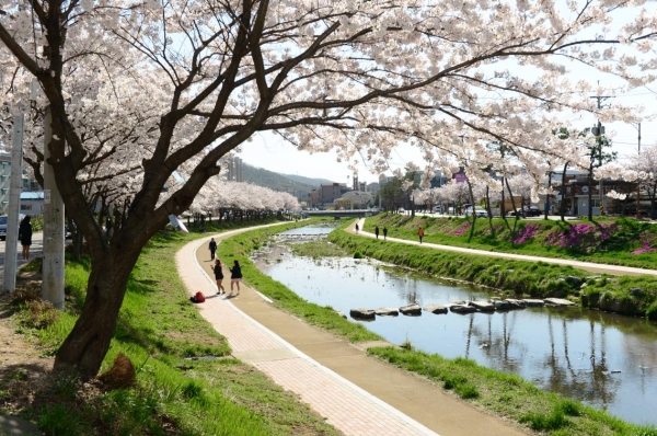 봄이 되면 산책로가 온통 벚꽃으로 뒤덮여 벚꽃 터널을 이루고 벚꽃 사이로 힐링하며 걷기 좋은 장소이다.