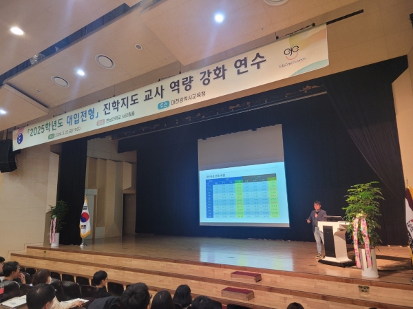 대전광역시교육청에서는 모든 고등학교 교사를 대입상담전문가로 양성하는 것을 목적으로 지난 3. 11.에는 저경력 고3 담임을 대상으로 ‘2025 대입전형에 따른 전략 분석 연수’를 진행했고 오는 4. 11.에는 고등학교 1·2학년 담당교사를 대상으로 ‘2026~2027년 대입전형의 이해와 학생 상담 연수’를 진행할 계획이다.