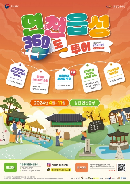 아울러 ‘면천읍성 360도 투어’와 야간 프로그램인 ‘달빛이 스며드는 소리’는 4월 20일에 예정되어 있는‘면천읍성·진달래 민속축제’와 연계해 벚꽃과 어우러진 면천의 아름다운 풍경을 알리는데 중점을 두고 운영할 예정이다.