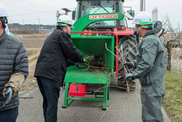 영농부산물 안전처리 지원사업은 농촌에서 소각 행위로 발생하는 산불을 예방하고 미세먼지 저감을 위해 추진하는 사업으로 파쇄지원단이 신청 농가를 찾아가 고춧대, 깻대, 콩대, 전정목 등 밭농업 부산물 파쇄작업을 무료로 대행하고 있다.