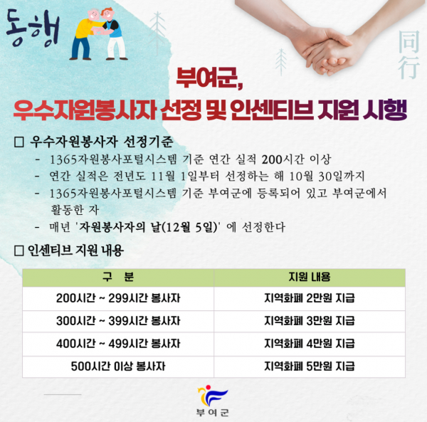 부여군, 자원봉사자에 대한 인정·예우 지원한다.