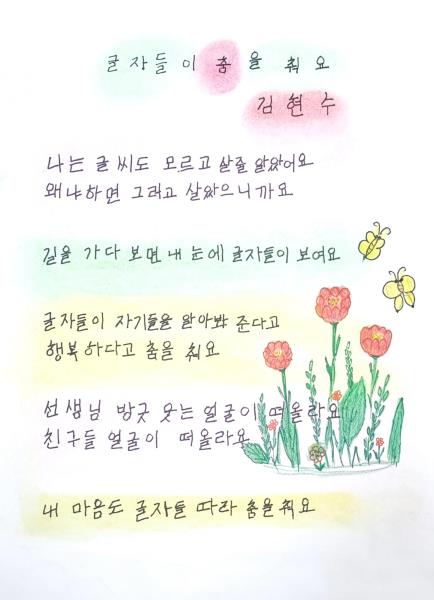 특히 김현수 어르신의 ‘글자들이 춤을 춰요’ 작품은 지난해 개최된 충남 성인문해교육 시화전에서 충남평생교육인재육성진흥원장을 수상하는 영예를 안았다.