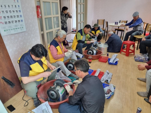 [Ytv영상스토리] 논산시농민회는 지난 23일 연무읍 죽본1리 노인회관을 방문해 주민들의 부엌칼, 낫 등을 갈아주는 찾아가는 칼갈이 봉사를 실시했다.