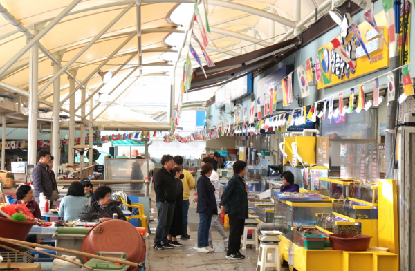 주꾸미, 새조개, 광어, 우럭 등 다양한 지역 수산물을 저렴하게 구입하거나 현장에서 직접 맛볼 수 있다.