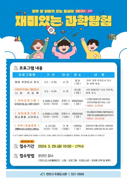 두정도서관 4월 테마 ‘과학’ 프로그램 운영