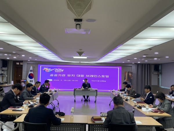 [Ytv영상스토리] 아산시는 지난 3월 29일 시청 상황실에서 공공기관 유치를 위한 브레인스토밍을 시행했다.