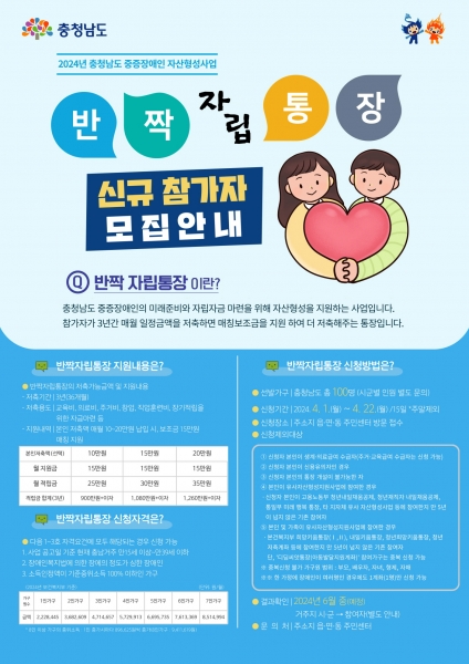 [Ytv영상스토리] 아산시는 2024년 중증장애인 자산형성 지원사업 ‘반짝자립통장’ 신규 참가자를 모집한다.