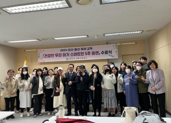 [Ytv영상스토리] 천안시 서북구보건소는 지난 3일 ‘제1기 건강한 우리 아기 스마트한 5주 플랜’이라는 주제로 임신·출산·육아교실 수료식을 가졌다.