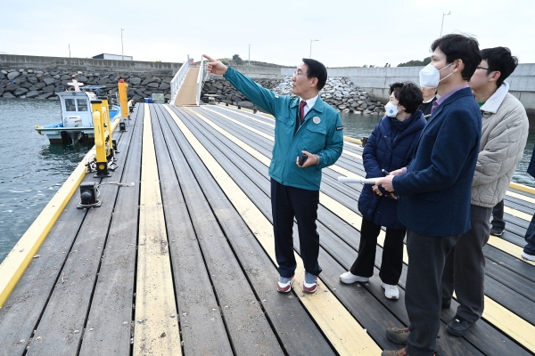 이 군수는 지난 4일 서부면 죽도 현장을 직접 방문해 진행 중인 80억원 규모의 죽도항 어촌뉴딜300사업과 죽도 제2조망대 잔도 설치사업 등을 꼼꼼히 점검했다.