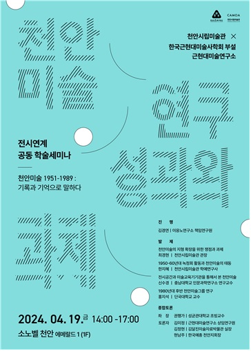 학술세미나 1부는 천안시립미술관 최경현 관장이 ‘천안미술의 지형 확장을 위한 쟁점과 과제’에 대해 기조강연하며 2부는 종합토론으로 구성된다.