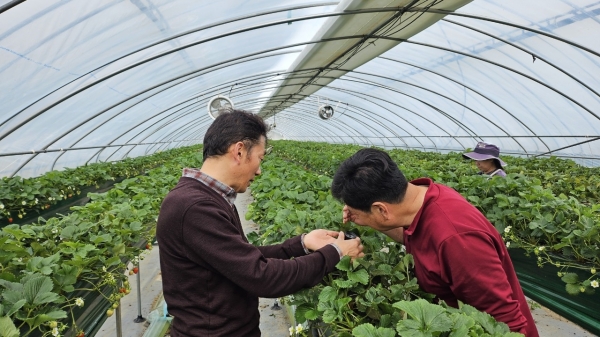 군은 지난 2일 천적곤충 자가사육실에서 기른‘뿌리이리응애’를 딸기 하우스 등 재배 현장에 첫 적용해 실증연구를 본격적으로 시작했다.