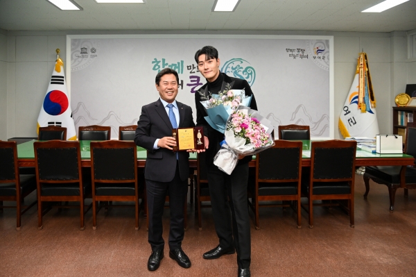 [Ytv영상스토리] 박정현 부여군수는 지난 5일 군수 집무실에서 뮤지컬배우 임정모를 부여군 홍보대사로 위촉하고 위촉패를 전달했다.