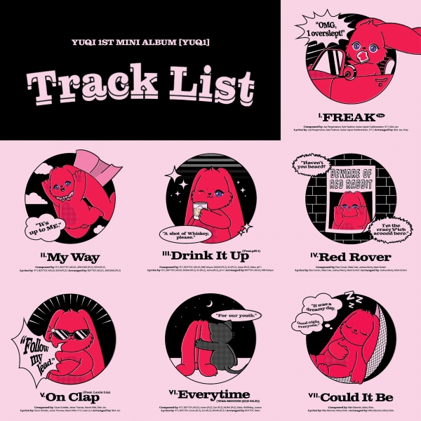 공개된 트랙리스트에 따르면 우기의 미니 1집에는 타이틀곡 ‘FREAK’부터 ‘My Way’, ‘Drink It Up’, ‘Red Rover’, ‘On Clap’, ‘Everytime’ 그리고 선공개된 ‘Could It Be’까지 총 일곱 개의 트랙이 담긴다.