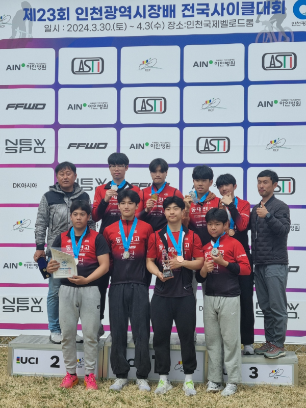 그 결과를 점검하고 가능성을 가늠하기 위해서 지난 3월 30일 ~ 4월 4일까지 인천국제벨로드롬 경기장에서 개최된‘제23회 인천광역시장배 전국사이클대회’에 참가해 남고부 개인경기에서 이민우 선수가 옴니엄 종합, 옴니엄, 옴니엄에서 금 1개, 은 1개, 동 1개 획득, 정석우선수가 경륜, 스크린트에서 금 1개, 은 1개 획득, 정윤석 선수가 포인트에서 은 1개를 추가했다.