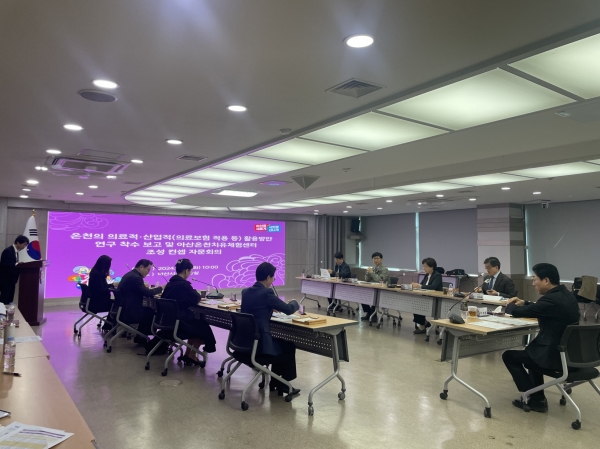 온천의 의료적·산업적 활용 방안 착수 보고에서는 유럽에서 인증되고 있는 온천의 급여화를 대한민국에 도입하기 위한 사례조사와 수행 체계 등에 대한 설명과 논의가 있었다.