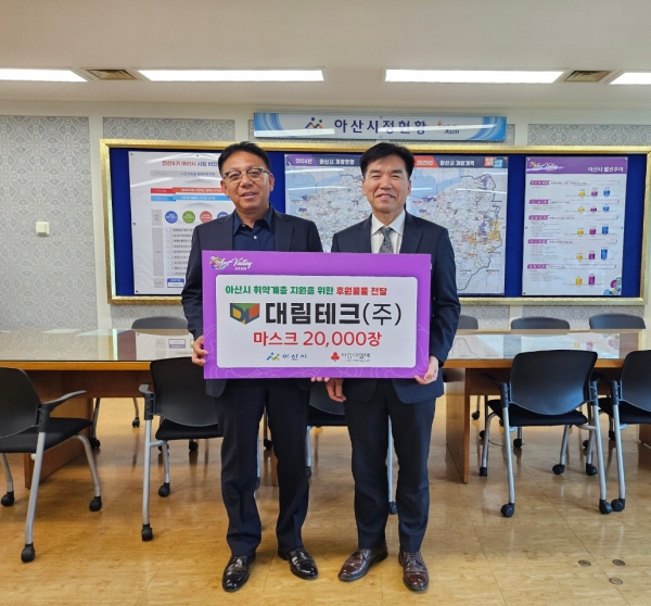 대림테크㈜, 아산시 취약계층에 마스크 2만장 전달