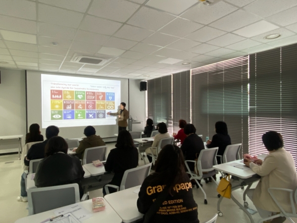 이날 교육은 ‘SDGs의 의미와 지속 가능한 발전 방향’이라는 주제로 원주 ‘지속발전 협의회’ 제현수 사무국장의 강의로 진행됐으며 SDGs에 대한 이해와 핵심 목표들을 제시하고 17개 필수적인 항목들에 대해 이해하는 시간을 가졌다.
