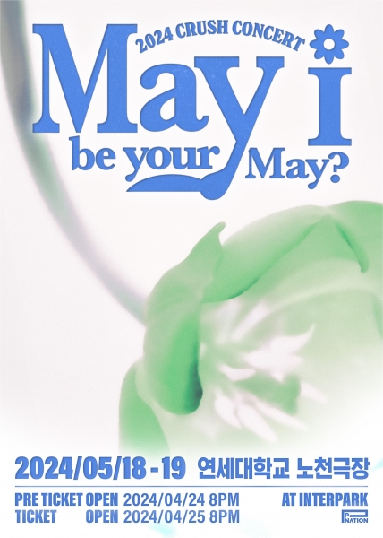 크러쉬의 단독 콘서트 ‘2024 CRUSH CONCERT [May I be your May?]’의 티켓 예매는 인터파크 티켓을 통해 24일 오후 8시부터 팬클럽 선예매, 25일 오후 8시부터 일반 예매가 진행된다.
