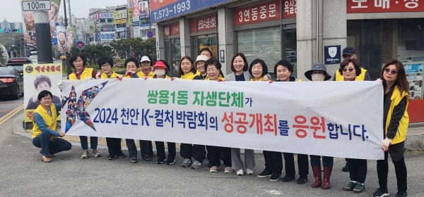 [Ytv영상스토리] 천안시 쌍용1동 통장협의회는 지난 11일 쌍용동 차돌길삼거리 일대에서 2024 천안 K-컬처박람회의 성공개최를 기원하는 시민다짐대회를 실시했다.
