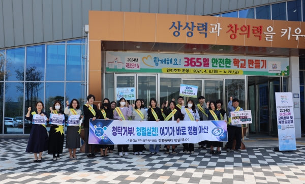 4월 12일 오후 2시경, 공무원 청렴동아리‘청심’은 충청남도교육청과학교육원 대강당에서 실시된 2024년 교육정책 및 재정 설명회를 맞아 청렴캠페인을 진행했다.