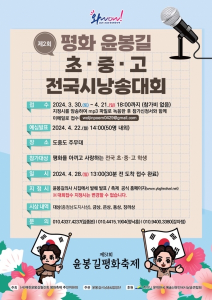 시낭송 대회 접수는 4월 21일까지며 그리기 대회 접수는 4월 25일까지 진행된다.