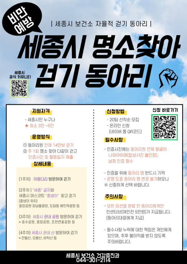 [Ytv영상스토리] 세종특별자치시보건소가 시민의 비만 예방과 건강증진을 위해 ‘자율적 걷기 동아리’를 운영한다.
