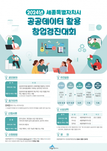 성문현 정보통계담당관은 “이번 창업경진대회가 공공데이터를 활용한 참신한 아이디어를 발굴하고 창업으로 이어지는 계기가 될 것”이라며 아이디어를 보유한 창업자, 학생의 많은 관심과 참여를 당부했다.