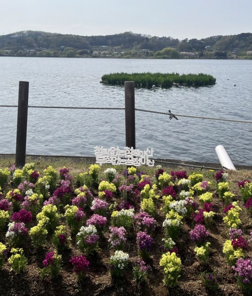 직원들은 봄꽃 개화 시기에 맞춰 신정호수공원 산책로 일원과 수생식물전시장, 제방 둑 등 8곳에 꽃밭을 조성하고 공모를 통해 선정된 청렴 표어를 함께 전시했다.