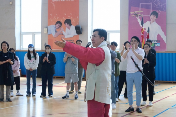 [Ytv영상스토리] 박경귀 아산시장은 18일 아산시 청소년교육문화센터 실내체육관에서 진행한 뮤지컬‘필사즉생’ 연습 현장에 방문해 아산시립합창단원을 격려했다.