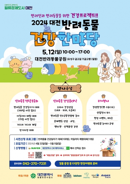 [Ytv영상스토리] 대전시는 대전반려동물공원에서 5월 12일‘2024 대전 반려동물 건강한마당’을 개최한다.