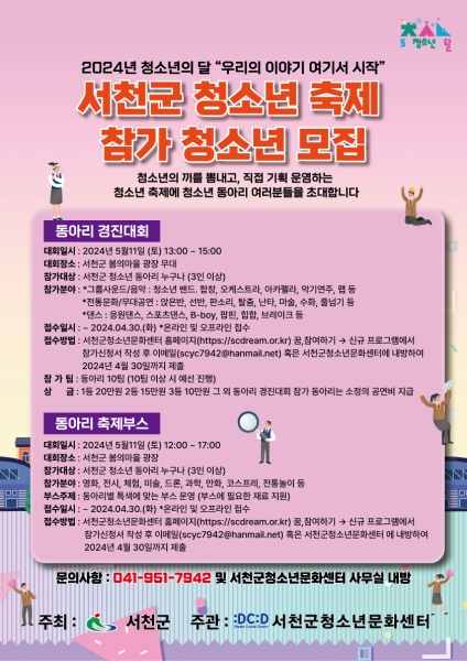 서천군청소년문화센터, ‘청소년 축제에 동아리 참가팀을 모집한다’