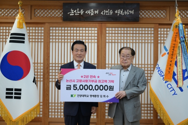 ‘논산 고향사랑 1호’ 김희수 총장, 2년 연속 최고액 500만원 기부