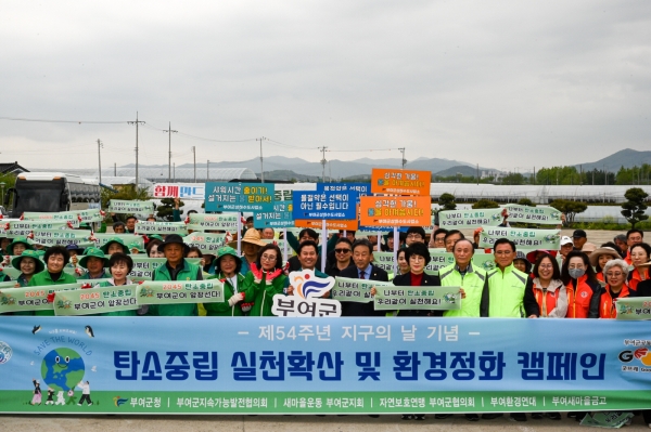 지난해 부여군 2045년 탄소중립 실현을 선언한 박정현 부여군수는 제54주년 지구의 날에 탄소중립 캠페인과 정화 활동에 참여해 준 사회단체 등에 감사의 말을 전하며 “우리 군민들께서는 기후 위기에 따른 자연재해의 시련을 지난 2년 동안 경험했다”며 “지금부터라도 지구 환경을 온전히 지켜가기 위해 다 같이 노력하자”고 강조했다.