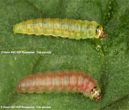 토마토뿔나방은 주로 가지과 작물에서 발견되며 특히 토마토에 가장 피해가 큰 것으로 알려져 있고 유충은 1.6∼7.7㎜, 성충은 약 6∼7㎜로 식물체 조직에 구멍을 뚫고 넓은 갱도를 만든다.