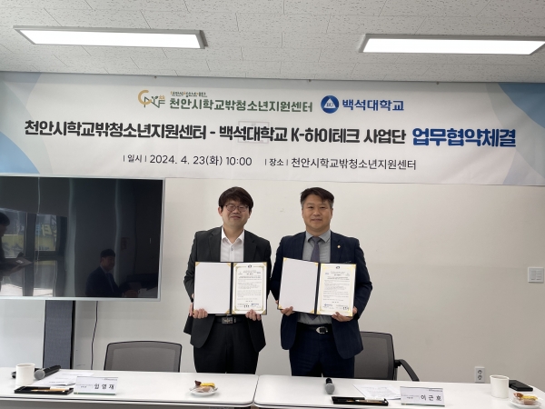 천안시학교밖청소년지원센터, 백석대 K-하이테크 사업단과 협약
