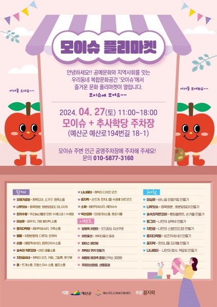 아울러 오는 10월까지 매월 마지막 주 토요일에 ‘모이슈 벼룩시장’을 열 계획이다.