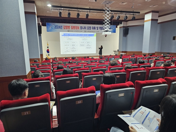 이날 교육은 충남감염병관리지원단 정승희 선임연구원이 질병정보 모니터 요원의 역할 및 감염병의 발생원인과 예방법 등에 대해 강의를 진행했다.