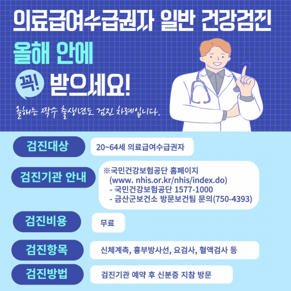 금산군, 의료급여수급권자 건강증진 무료 건강검진 독려
