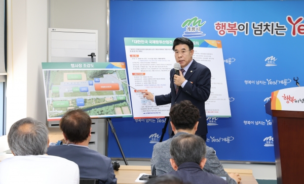 [Ytv영상스토리] 이응우 계룡시장은 26일 시청 언론 브리핑룸에서 기자회견을 갖고 ‘KADEX 2024’를 계룡시에 유치했다고 밝혔다.