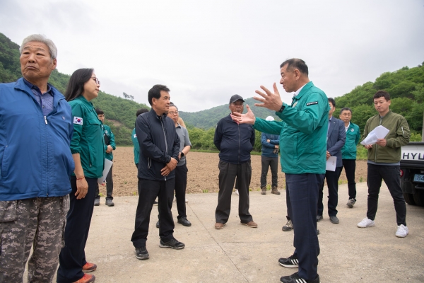 최 시장은 이날 정연광 시민안전과장과 김만수 건설과장, 김태완 도로과장, 관할지역 동·면장 그리고 이통장 및 마을주민 등과 함께 재해복구사업 현장 4개소를 방문해 추진 상황을 중점적으로 점검했다.